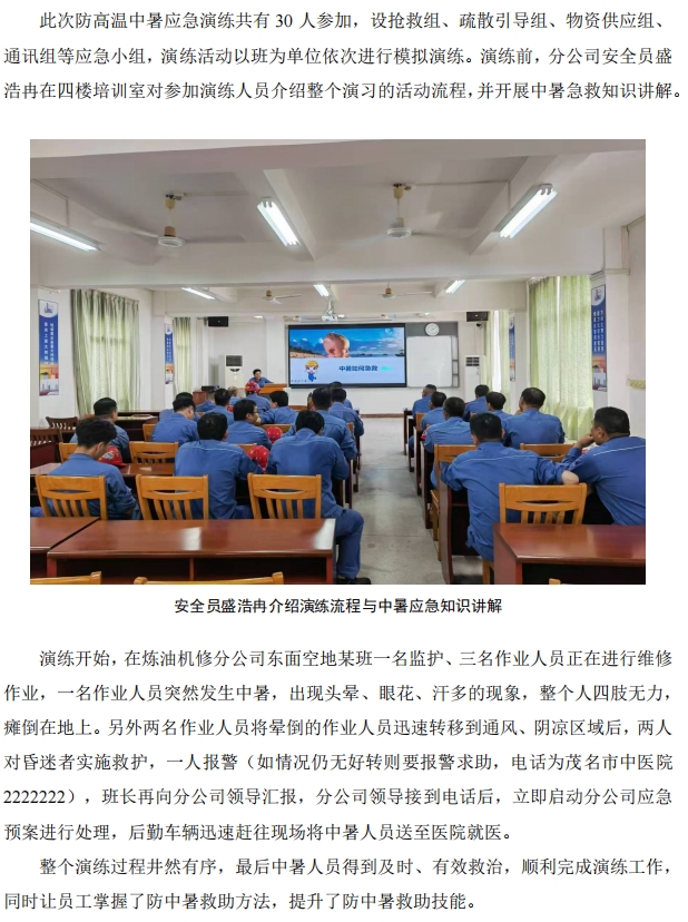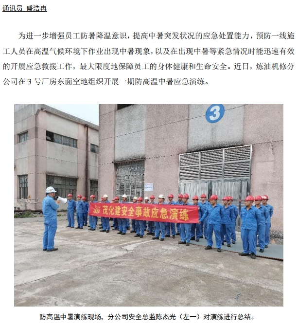 煉油機修開展防高溫中暑應(yīng)急演練