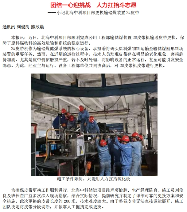 記北海中科項目部更換輸儲煤裝置 2#皮帶