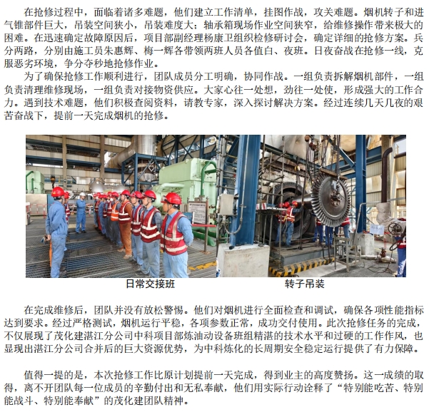 中科煉化催化裂化煙機搶修紀(jì)實