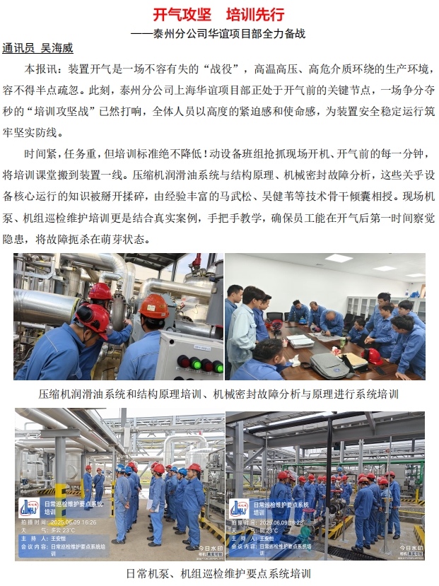 泰州分公司華誼項(xiàng)目部全力備戰(zhàn)裝置開汽