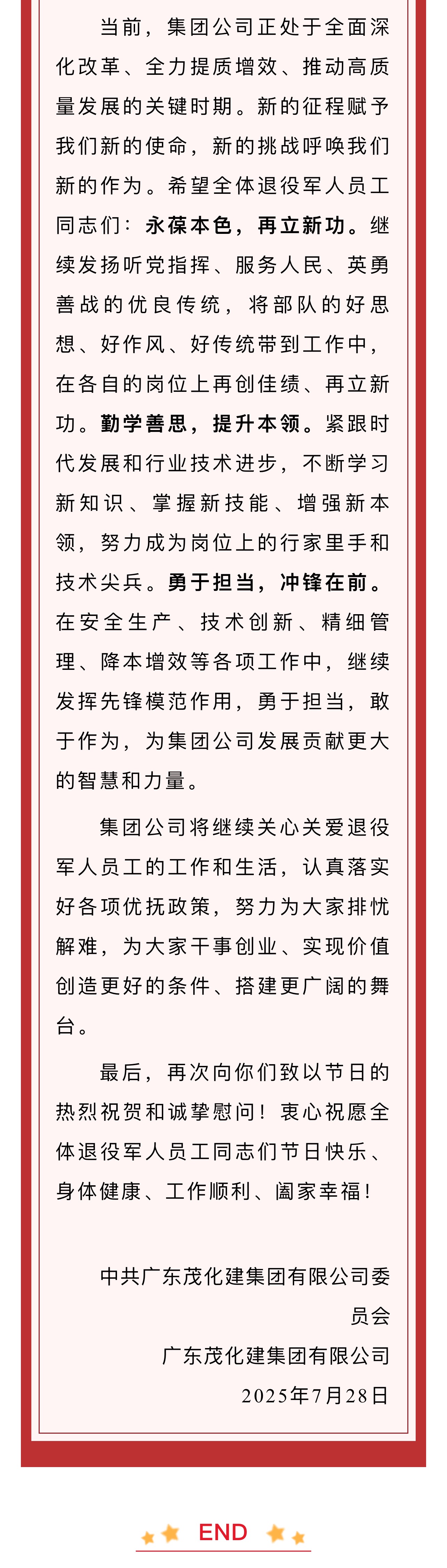 八一建軍節(jié) | 致公司退役軍人的慰問(wèn)信