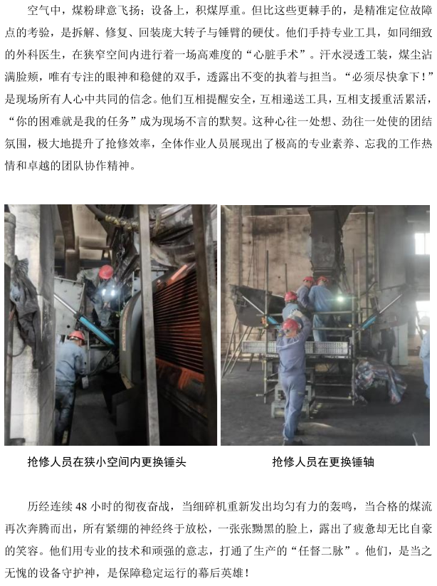 北海中科項(xiàng)目部輸儲煤裝置細(xì)碎機(jī)搶修攻堅(jiān)戰(zhàn)