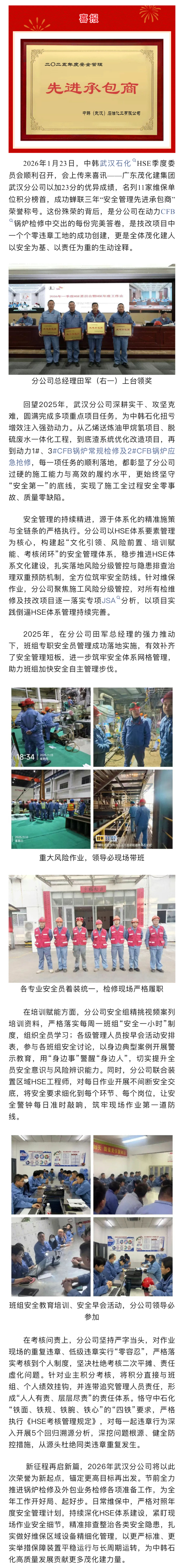 喜報(bào) | 榮獲中韓(武漢)石化"2025年度安全管理先進(jìn)承包商”稱號(hào)
